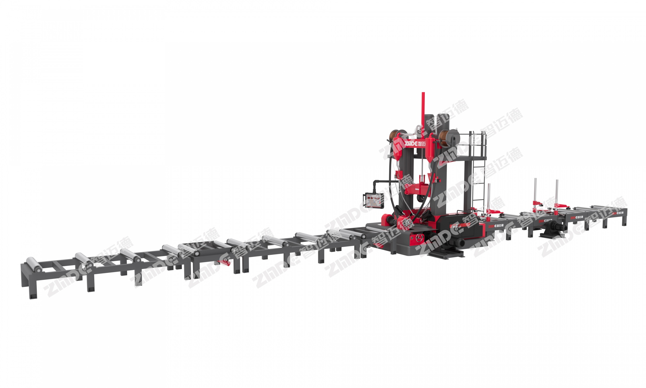主要功能:H/T型鋼的組立、焊接、矯正一體化生產(chǎn)。